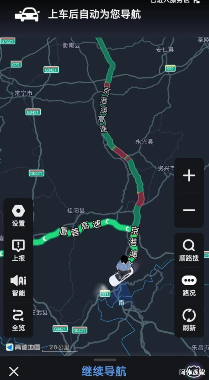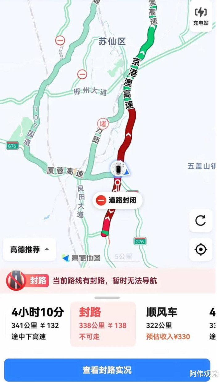 从男子的导航信息看,1月19日深夜10点多,湖南境内处于道路封闭状态,而这位网友所处的位置在郴州市苏仙区路段。