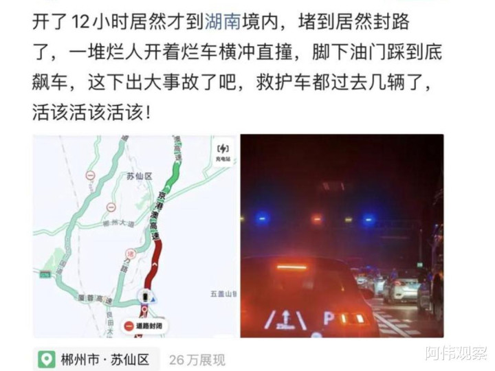 男子吐槽在京港澳高速公路行驶12小时才到湖南境内。